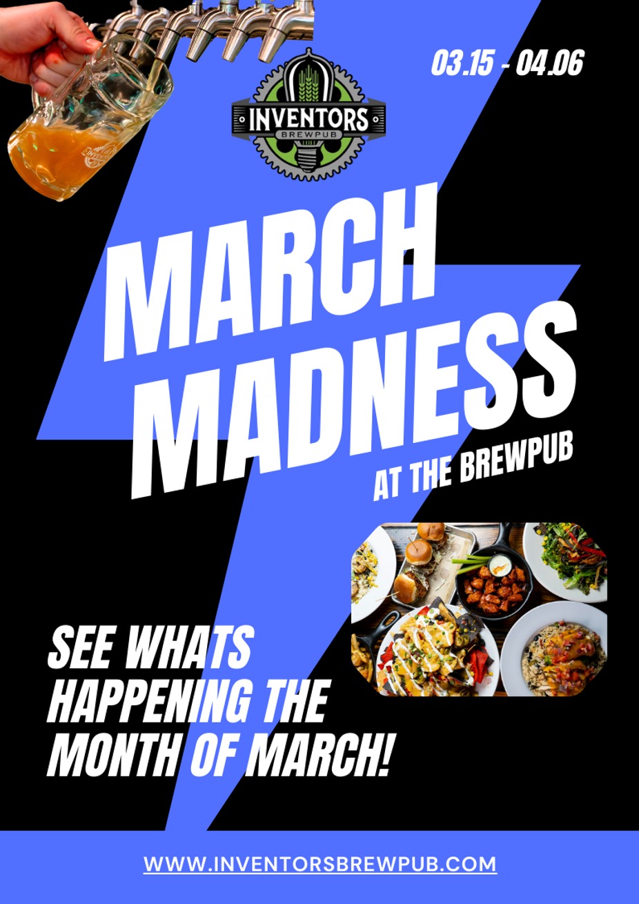 March Madness is ON all month long! Shoot for free beer, crush our new wing specials & frickles, sip pitchers, and celebrate every upset at the bar with FREE POPCORN! Come play, cheer, and snack your way through the tournament at Inventors Brewpub!